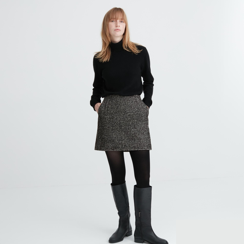 Состав: 90% полиэстер, 10% шерсть; подкладка: 100% полиэстер Tweed Mini Skirt (Houndstooth) теплая твидовая ткань простой трапециевидный крой на подкладке карманы с обеих сторон текстурированная ткань добавляет выразительный акцент