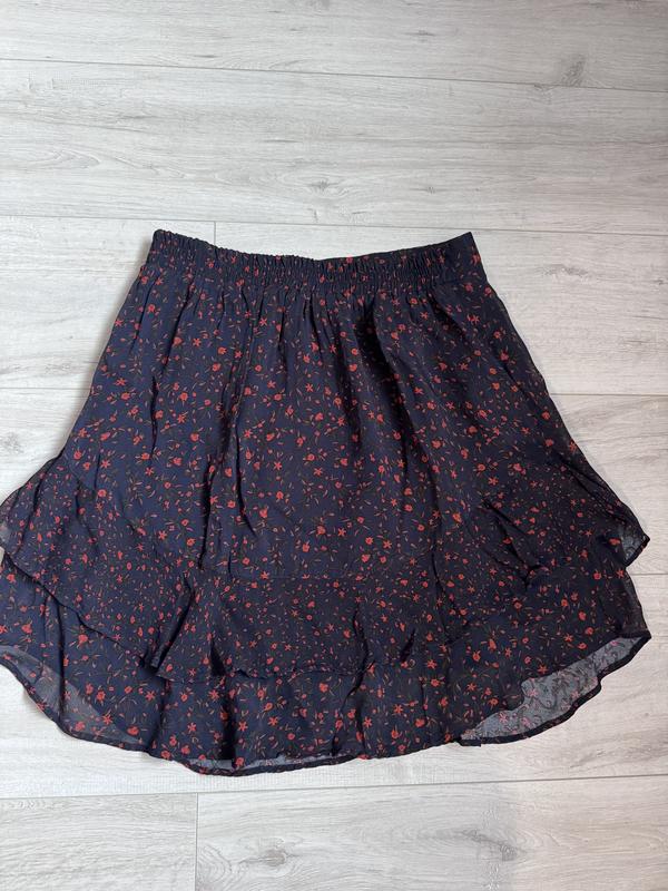 спідниця темно синього кольору з квітковим принтом , довжина 55 см, талія 37 см, збільшується до 50см за рахунок резинки. Дуже легка. Купувала собі, але жодного разу не вдягала. Нова без етикетки