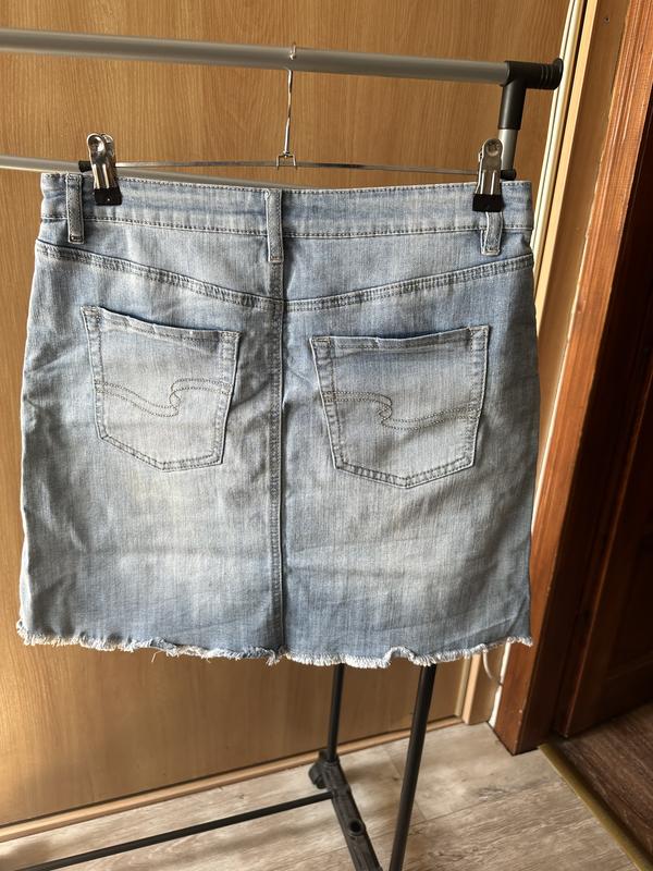 Класна джинсова спідниця Актуальна модель Стан бу ,без нюансів Гарний колір і модель Розмір вказаний м Підійде на л Довжина 44 Пот 40 Поб 52 Трішки тягнеться