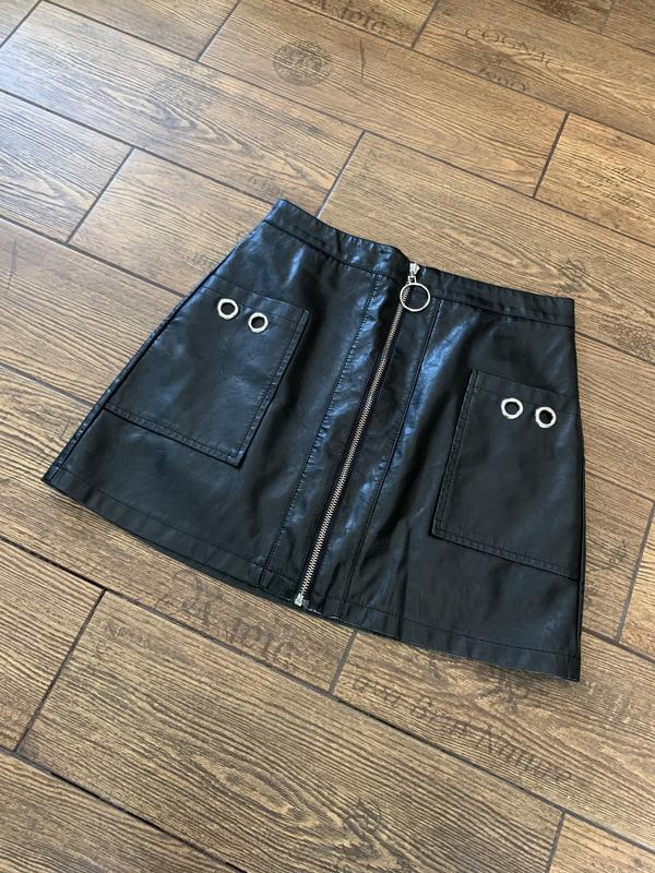 Стильная юбка под кожу с металлическими акцентами, спереди молния, внутри шортики^^. два кармана, качественная и эффектная. Размер S, пояс 36см, ПОБ 47см, длина 40см. Она 🔥
