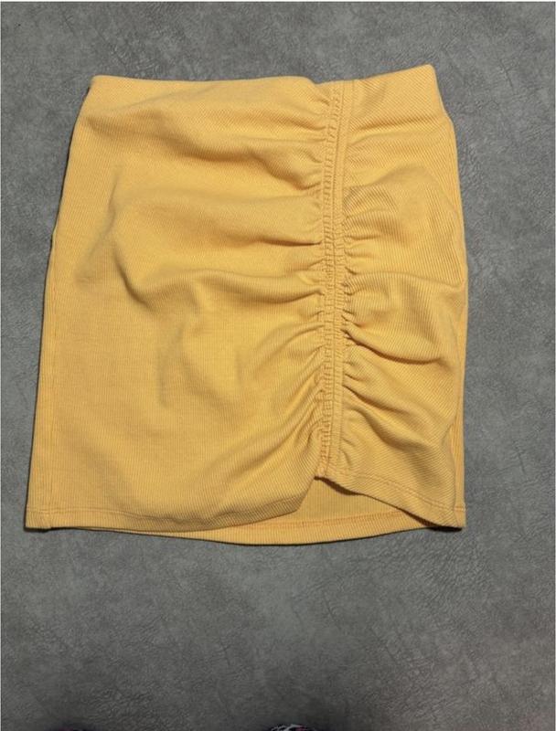 Спідниця у рубчик Zara р. XS/S , довжина міні, стан гарний, тягнеться. Колір: персик. Фото не передає колір, він не такий жовтий. Заміри у нерозтягнутому стані: довжина - 35 см, півобʼєм у талії- 28,5 см(тягнеться до 35 см), півобʼєм у стегнах- 36 см(тягнеться до 45 см).
