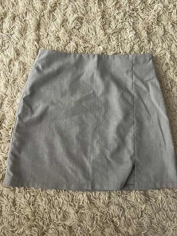 Спідниця з розрізом. Одягалася один раз. Заміри на фото, Колір світло-сірий