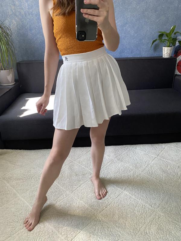 Міні спідниця з шортиками з мікродайвінгу гарного молочного кольору. Нова. Довжина 38 см, ПОТ 32 см. Мої параметри 74-64-92, зріст 165 см.