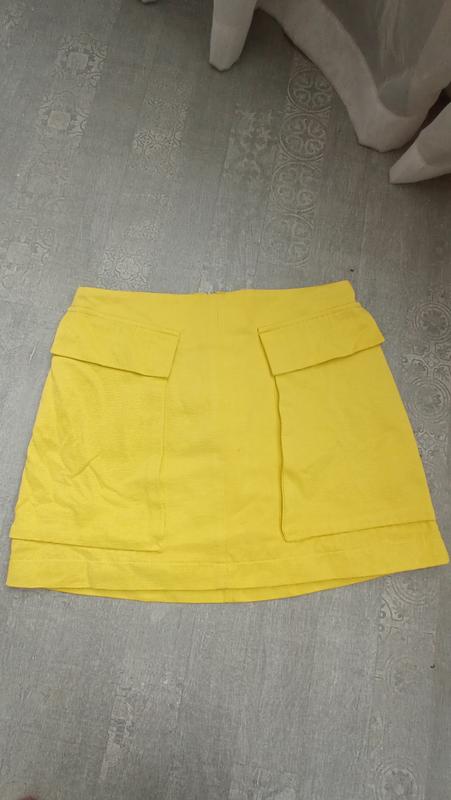 Мини юбка, кисдотно-желтого цвета