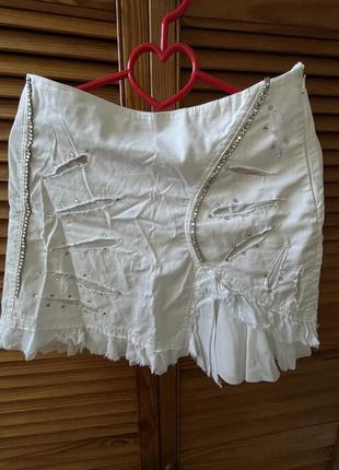 Грайлива біла спідничка Не була в носці Без дефектів та слідів З цікавими деталями Пряма Коротка Посадка середня Всі камінчики на місці Легенька