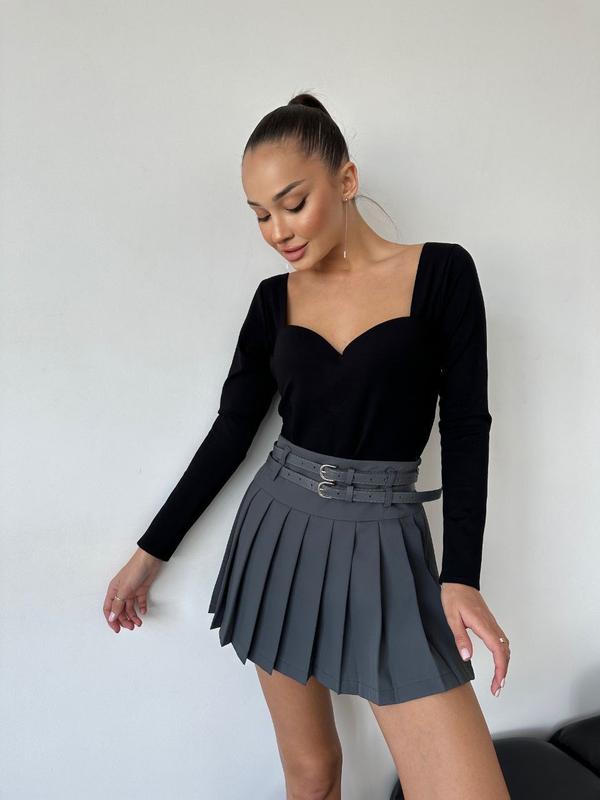 Юбка пліссе Трендова модель цього року. Виробництво фабричний Китай Гарна якість виробу та крій. В комплекті 2 ремені Колір: сірий Розмір М ------------------- М: талія-36 см, бедра-55 см Довжина 36 см
