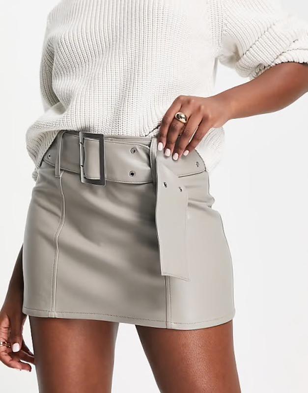 Серая мини-юбка с поясом из искусственной кожи asos design