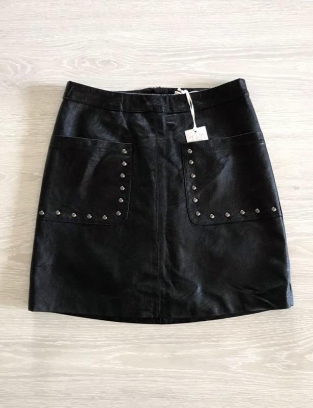 Indigo нова спідниця з кишенями. Розмір 8/36; 160/64 А. Довжина 43 см. ПОТ 36 см. ПОС 47-50 см. Тканина мʼяка, екошкіра, відмінного готунку, від шкіри не відрізнить.