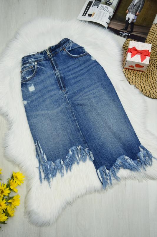 Спідниця джинові з бахромою асиметрична з розрізом юбка денім