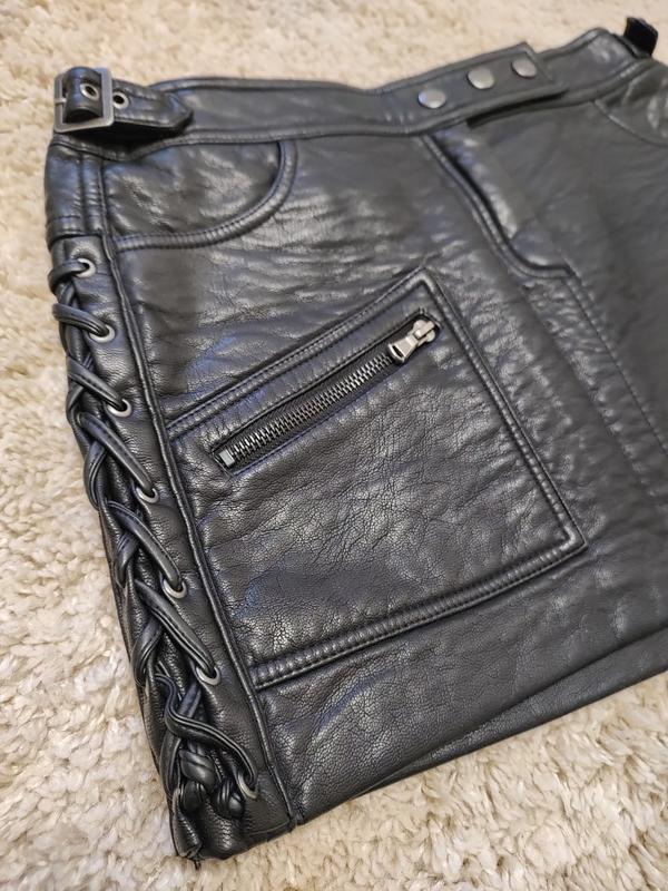 Класний утеплений варіант міні. Якісний шкірзам, утеплена, дві кішені, фурнітура вся робоча.Купувала в офіційному магазині. Стан - ідеальний! Заміри: ПОТ- 38см, довжина 34 см.
