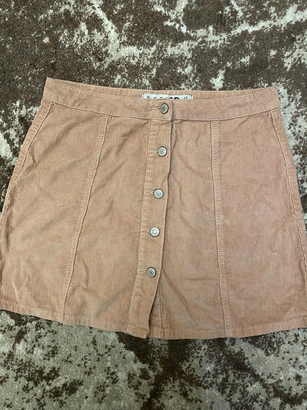 Пудрова вельветова спідниця на ґудзички від Denim 100%котон Uk-14, eur-42,USA-10,it-46 Довжина 42 Пояс пів обхват 41 см, Бедра пів обхват 50 см