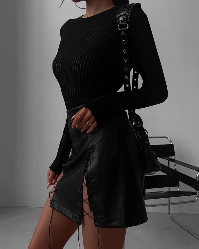 🔥NEW 🔥 спідниця ▪️мод 274 ▪️тканина : еко шкіра ▪️колір: чорний ▪️SM, ML Спідниця на шнуровці 😍 Застібається на потаємну блискавку; ширину та висоту вирізів можна регулювати шнурками ; Спідниця виконана з матової екошкіри; Якісне пошиття 👌 Розмір: SM | ML Талія: 60-68 | 67-74 см Стегна : 88-95 | 95-100 см