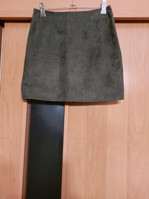 Зелена міні спідниця Atmosphere, еко замша, на замочку збоку. Заміри ПОТ 37 ПОБ 45, довжина 40см