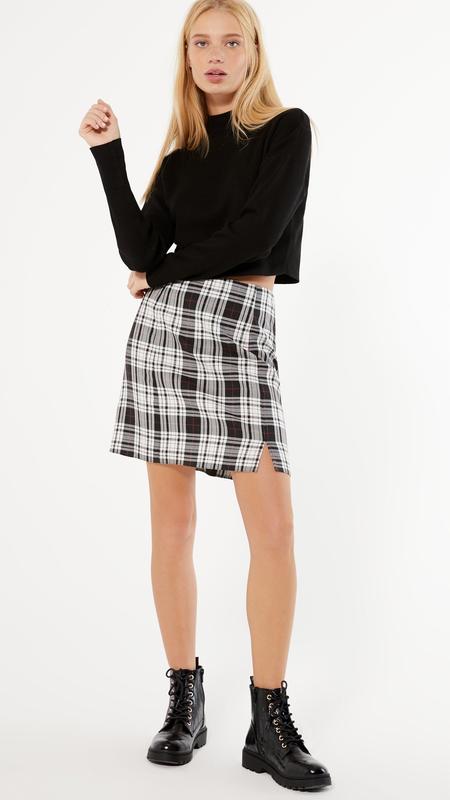 Брендова спідниця міні "new look" у клітинку з розрізом спереду. розмір uk10/eur38.