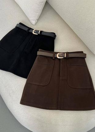 Новинка 😍 Спідниця Кольори: бордо, чорний, шоколад Тканина: замш на дайвінгу Розміри: 42-44, 46-48 Базова спідниця, яку ти не захочеш знімати😍 Пояс йде в комплекті 🖤
