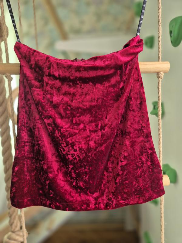 Спідниця міні велюрова, тканина гарно тягнеться, приємна до тіла. Розмір 8/ 36. Є нюанс, на фото останньому.