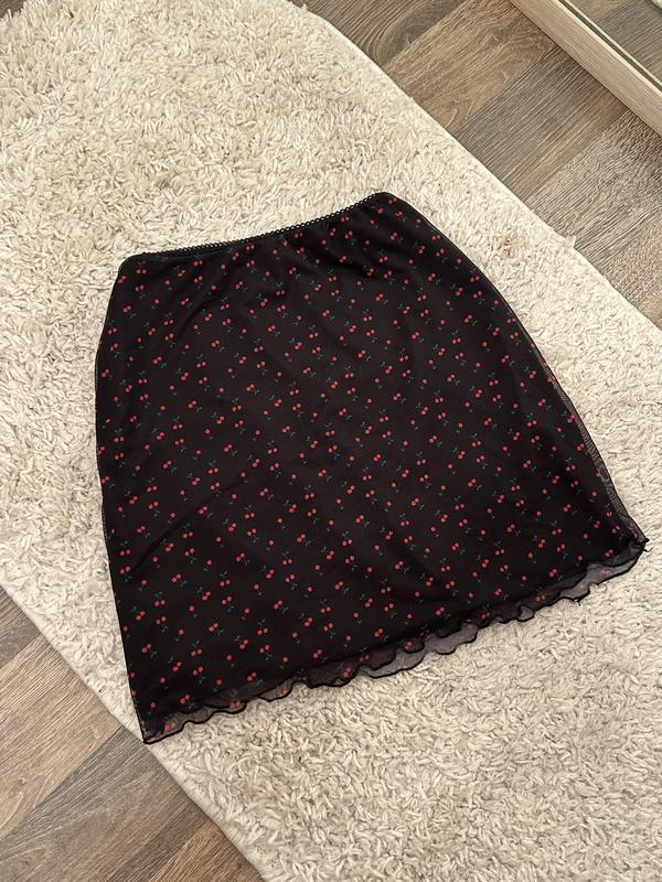 Мини юбка с вишнями