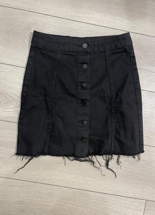 Юбка джинсовая, черного цвета На пуговицах металлических Размер s-m Стан - идеальный