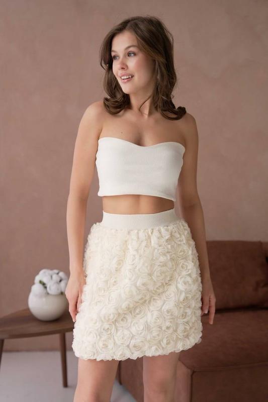 Жіноча спідниця з 3D-квітами Стильна та ніжна спідниця, прикрашена об’ємними квітами, стане родзинкою вашого гардеробу 🤍 Виробник: Туреччина Розмір: універсальний Колір: молочний Ціна : 1300 грн №2500