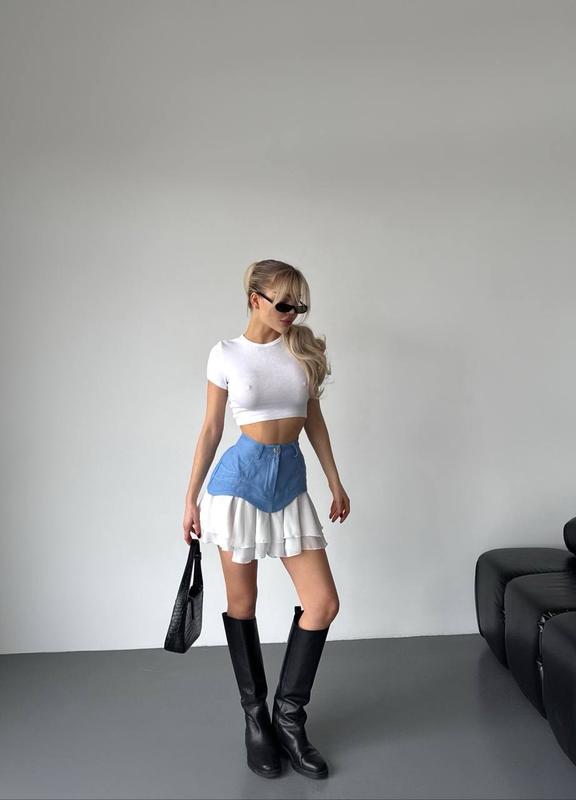 Спідниця, яка полонила ваші серця-відтепер також в наявності в більш легкій тканині 🥰🔥 ▪️Мод: 433 ▪️Ціна: 1150 грн ▪️Розмір: 42-44 та 46-48 ▪️Тканина: верх-щільний джинс турецький, волани-креп шифон ▪️Колір: чорний, блакитний та беж Спідниця з імітацією баски. Вона поєднує в собі зручність та підкреслить ваш стиль і легкість. Така спідниця ідеально підійде для повсякденних днів чи вечірок, створюючи легкий та романтичний образ.
