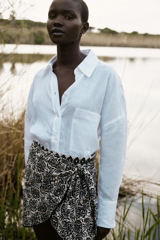 Спідниця Zara з блискавкою і можливістю відкоригувати посадку за рахунок елементу на запах. Одягалась 1 раз. Розмір xs, проте сідає на s. Одягнуто на параметри: талія-62, стегна-90, зріст -172 +каблук