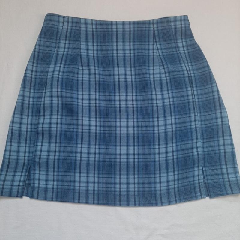 Легенько спідничка. Застібається на блискавку ззаду. Спереду по боках є маленькі розвідки по 7см. Склад на бірці. Заміри: довжина - 41 талія - 33 стегна ~45 * є крихітні непомітні затяжки, можна виправити їх