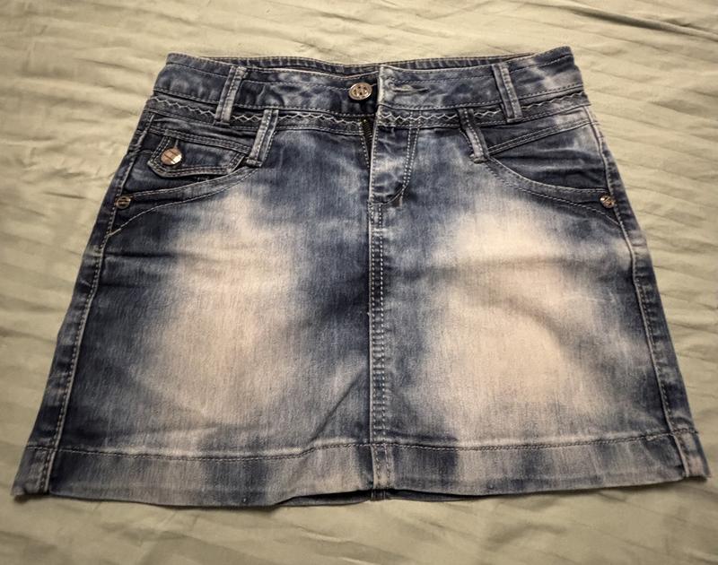Джинсова міні-спідниця в гарному стані, одягалася 2-3 рази. Якісь хороша. Ідеально на параметри ОБ 88-92.