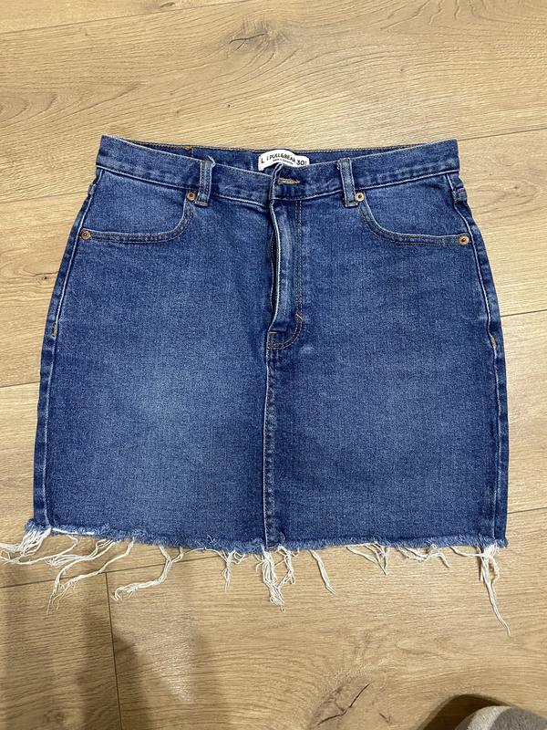 Джинсова спідниця міні в гарному стані, як нова. Розмір L. Талія 38см, в стегнах і знизу 46-47см довжина 40-42см