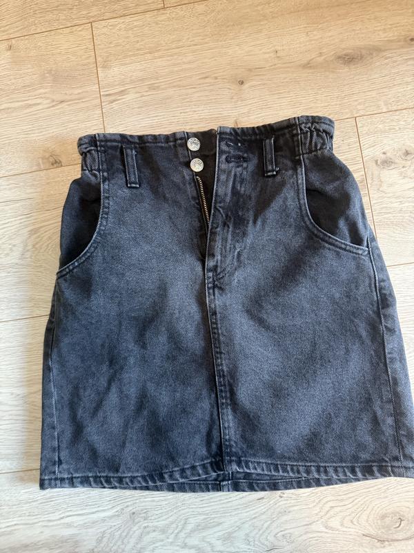Спідниця mango , джинсова, пряма, з високою посадкою, міні. Має цупкий джинс, сіро-чорного кольору, є кишені . Пояс на резинці. Застібається на ґудзик і змійку . Стан дуже хороший .