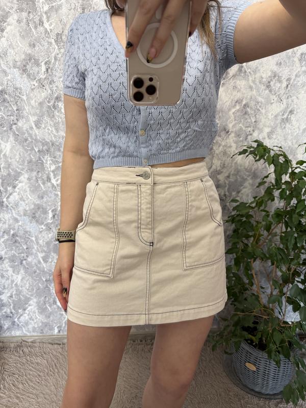 Спідниця юбка молочна джинсова спідниця з чорною стрічкою bdg