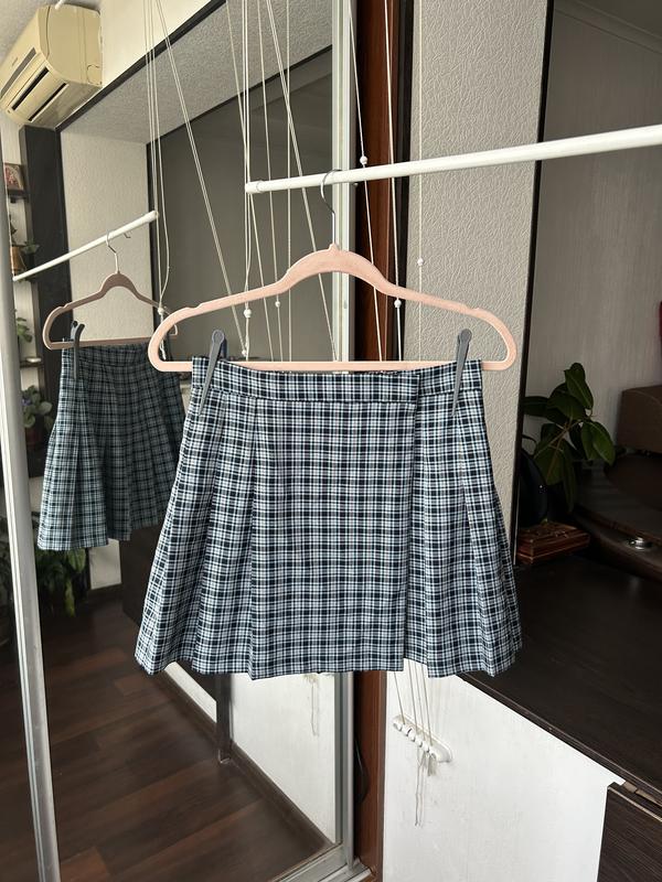 Состав: 90% полиэстер, 10% вискоза. Замеры: длина 39 см, полуобхват талии 35 см, полуобхват бёдер 46 см.