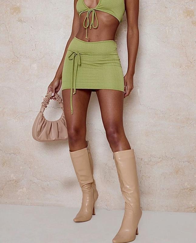 Трикотажна літня міні спідниця зелена салатова s 36 plt