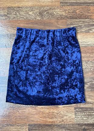 Оксамитова спідниця в синьому кольорі , 43 см довжина , еластична , як нова