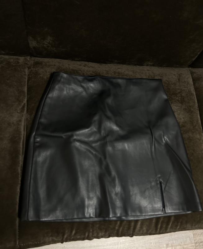 Шкіряна спідниця на хутрі, на замку ззаду