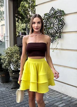 ‼️ОТПРАВЛЕНИЕ ВПРОДОВЖ 2-5 РАБОЧЫХ ДНЕВ!!️ Юбка Фото Real ☑️Ткань: американский креп жатка ☑️Размеры: 42-44; 46-48 ☑️Цвета: лимон, черный, розовый, молоко. Объемные воланы, сочные цвета, идеальная посадка - носишь, как королева. Модель 367J