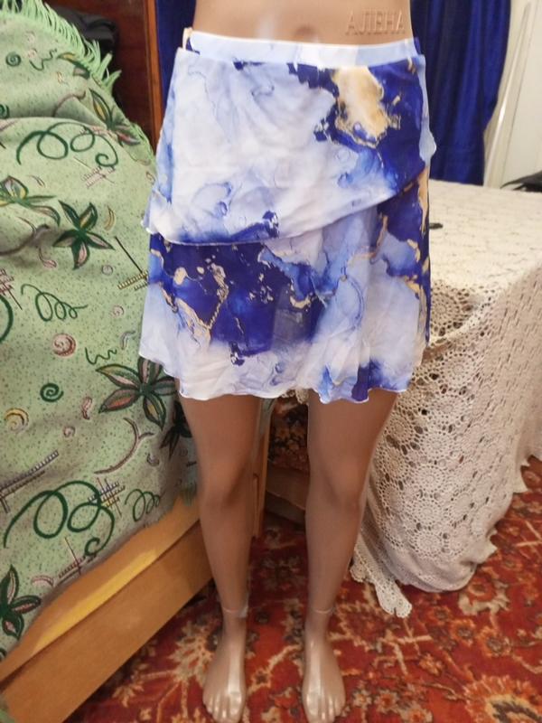 дуже гарна коротка спідниця. Тканина добре тягнеться. Розмір вказано подростковой, підійде на с, м, Л. опис стан отлічний довжина 35 пояс і пот 31 ширина бедер 53