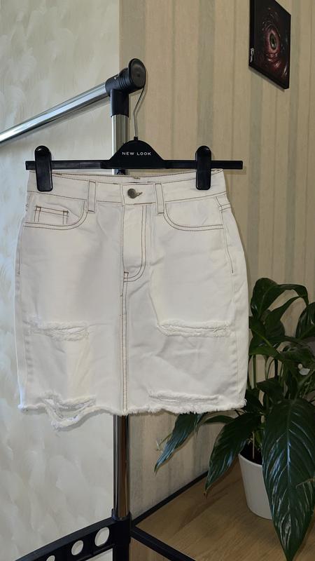 Джинсова біла міні спідниця з розрізами та необробленим краєм. Стан ідеал, розмір 34 (xs-s)