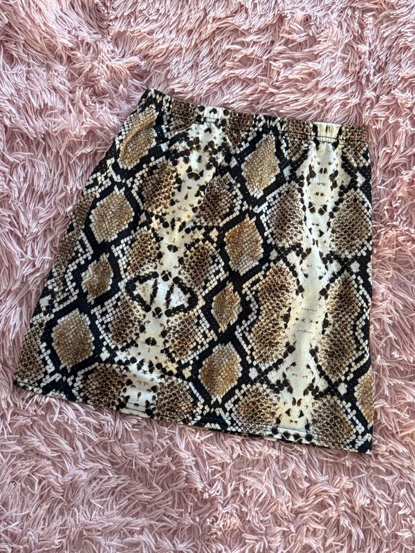 Міні спідничка у зміїному принті .Пише що розмір L але підійде і на S-M