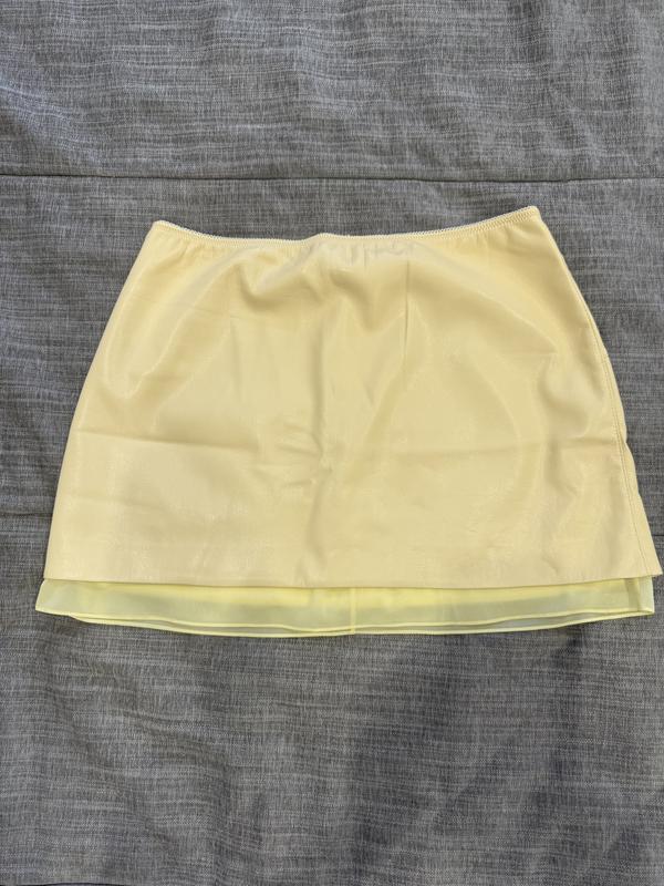 юбка из эко кожи the coat, модного светло-желтого цвета, размер S, идеальное состояние, спереди едва заметный синий след (е фото), потому что рядом с джинсами лежать