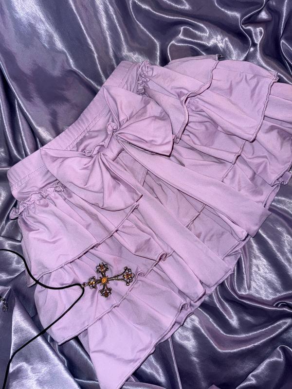 нереальна лілова спідничка в стилі лоліта з бантом 🪷 йде без шортиків сайз С-М
