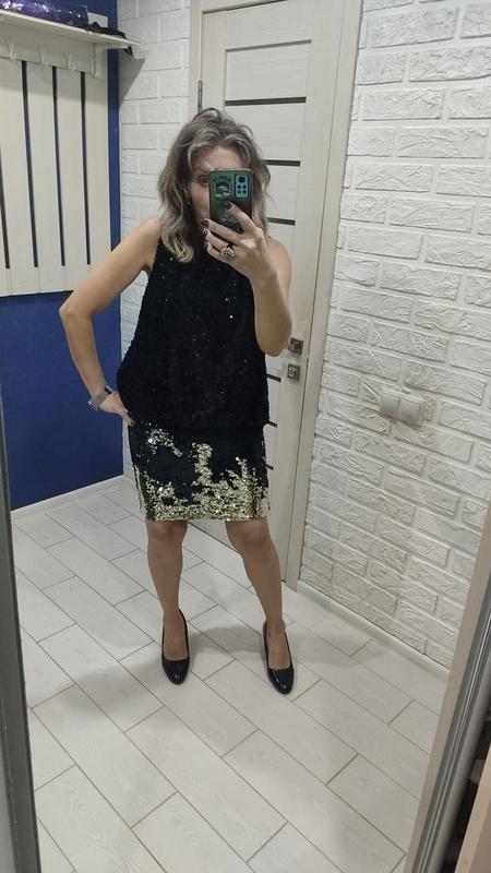 ПОТ 35 см, ПОС 45 см, ПО низу 40 см, сзади есть разрез снизу и молния на талии