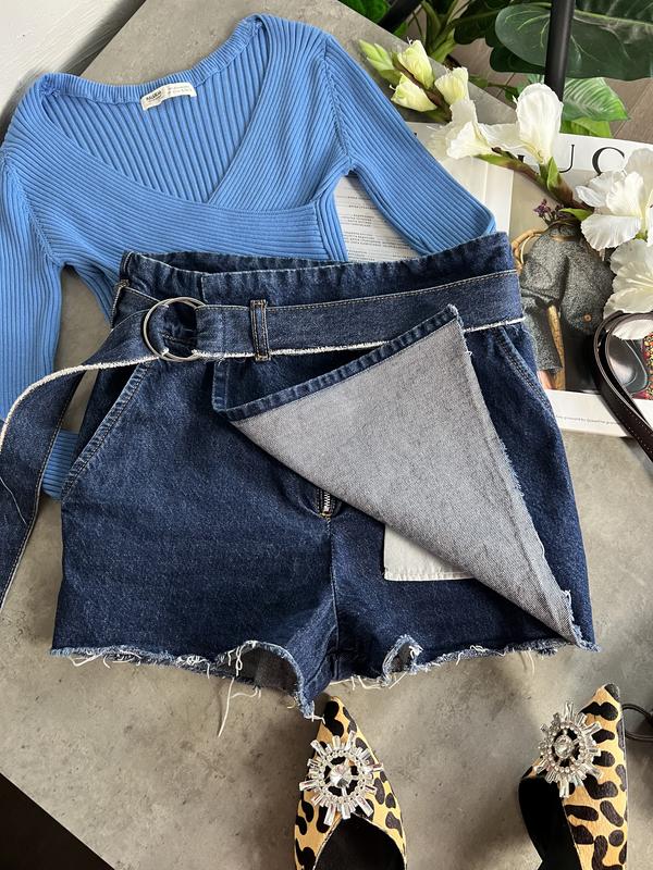 Джинсова спідниця-шорти Zara з ремінцем. Розмір S Пот 35 см. Поб 48 см. Посадка 33 см. Довжина 38 см.