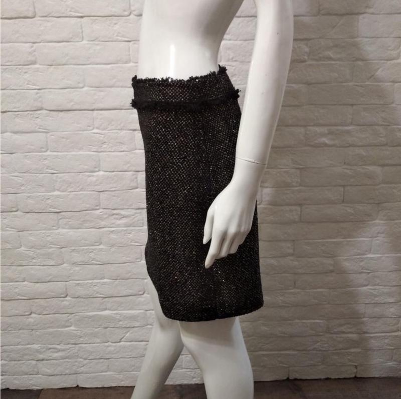 Размер S. Замеры: полуобхват талии 38 см, длина 49 см. Состав: 55% хлопок, 16% акрил, 15% полиамид, 11% вискоза, 3% полиэстер. С золотой и серебряной нитями люрекса.