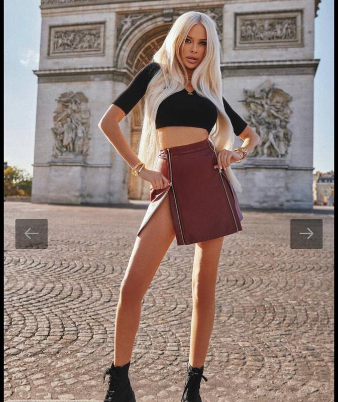 Спідниця з невеликим дефектом після прання( можливо треба ще раз попрати) спереду є трохи темних полосок наче тіні, і носці не видно. На фото показала. Розмір М Талія 36 Бедра 48 Довжина 41