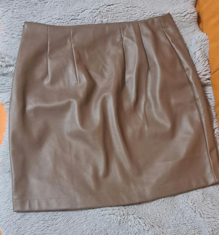 Спідниця коричнева шкіряна на флісі з вирізом ПОТ 36 ПОБ 46 Довжина 43