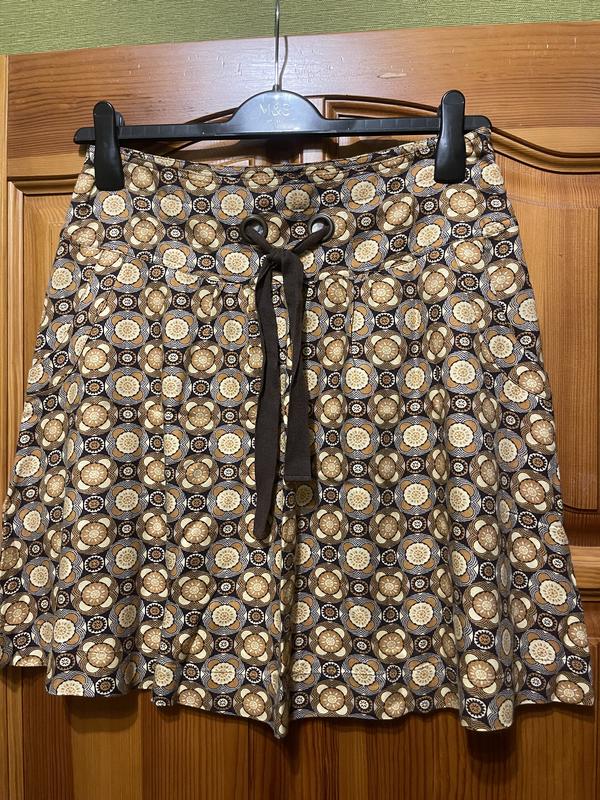 Юбка 100% вискоза,с карманами, ткань в красивом принте.Без подкладки.На талии регулируется поясок .Длина юбки 50 см, ширина в бедрах 60 см, талия 40 см.В идеальном состоянии.