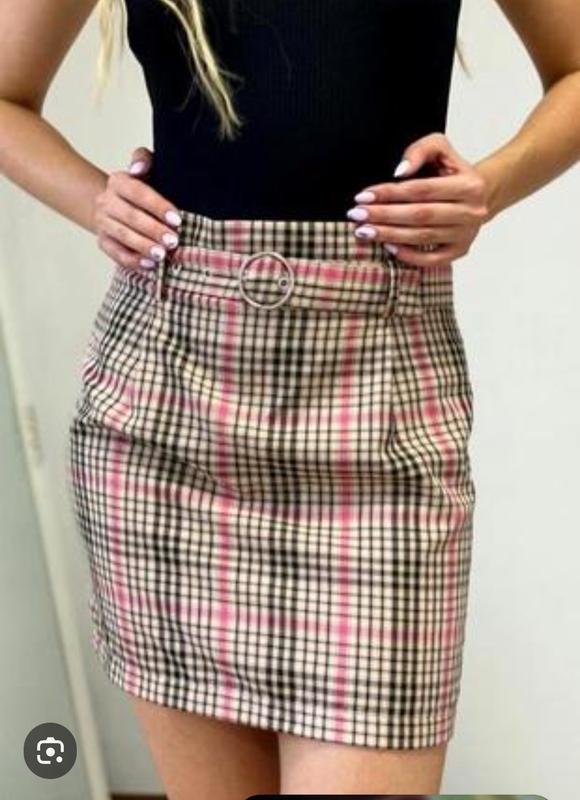 Спідниця у клітинку бежева, без підкладки, не дуже тепла, пасок відсутній. В гарному стані без нюансів.