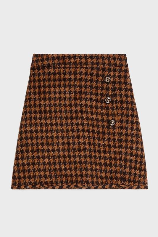 Вовняна спідниця sandro «гусяча лапка» коричнево-карамельна xs-s