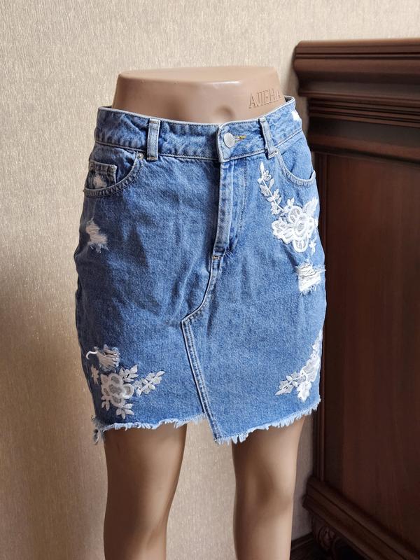 Джинсовая мини-юбка miss selfridge с вышивкой и потертостями
