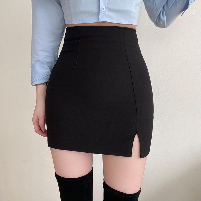 Спідниця міні з розрізом чорна висока посадка по фігурі в обтяг черная мини юбка с разрезо...